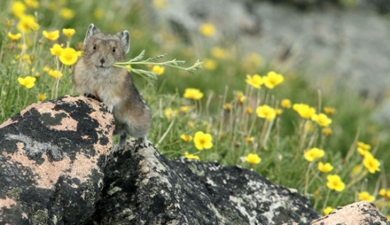 Banner day! The breeze was just enough to keep the mosquitoes honest. I've been wanting to get running or bounding shots of pika and this moring they gave me lots of opportunities. Today also seems to signal the beginning of food gathering for the upcoming winter. I got several great shots of that plus a cute photo of a baby pika smelling a flower before cutting it with his sharp teeth.