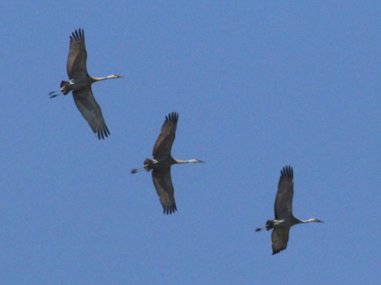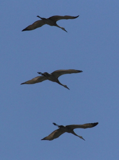 In the sky above, three sand-hill cranes soared in formation.