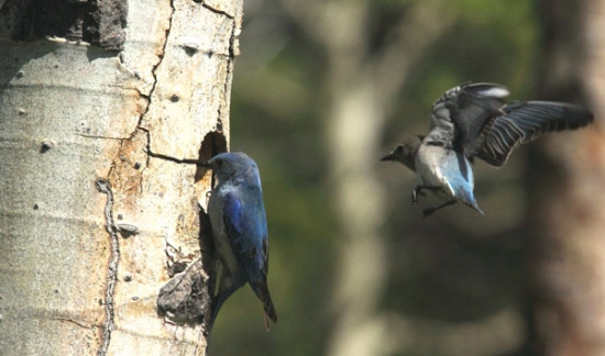 Since it is quite a tramp up to the Pebble Creek great gray owl nest, I decided to combine hiking with various groups, mostly college, with checking on the nests progress. A little background. This nest was first used in 2005 when Cassie and I found two chicks but didn't actually see the nest. The next year while hiking with Clemson I finally discovered the mistletoe nest. It was not used again until 2010 and as luck would have it, Clemson was once again with me when we found the nest occupied this year on May 27th. By the way she sat it appears she's still on eggs. June 6 Casper College was with me this evening when we approached the nest. We had already come across two black bears in the meadows below. First a beautiful Cinnamon, then in the next opening a small black. At the nest the owl seemed to be sitting higher. Chicks hatched? This was confirmed an hour later when the male arrived with a gopher and the female preceeded to shread it and feed unseen chicks under her feathers. It was raining off and on so we started back down, running into a third black bear in the first meadow. June 13 Melissa and her group of kids from North Carolina were my hiking partners this morning. It had been a week since I'd checked the Pebble Creek nest so I was anxious to see if chicks were visable. We arrived at 8:30 and apparently had missed a feeding because at one point she fed the chicks but we still couldn't see them. June 15 I decided to take a break from Pebble Creek and instead took Parks Collins and his group from North Carolina up into the high meadows above Calcite near Tower. A great gray nest up there was active in 1997, 1998, 1999 and 2001. So it's been inactive for twelve years but I have another nest this year that's being used after eight years of inactivity. So you never know, besides I have a pygmy owl nest up there also that needed to be checked. Well, both were empty although there was owl sign in the area. (white-wash and pellets) We did come across a few song bird nests in the aspens and found bear sign from the sow and three cubs. June 16 This afternoon I headed to the Pebble Creek nest with a group from Defenders of Wildlife in tow. We came across lots of bear sign including a bed with a dozen scats nearby. At the nest, the female sat quietly preening now and then. I was surprised the chicks were still too small for viewing. They should be around two weeks old. On my off days I visit a bluebird nest in the Beartooths. As I ventured deeper in the woods one afternoon a commotion erupted just ahead of me. I knew what it was instantly and froze in my tracks. A grizz was killing an elk calf and the frantic cow was barking and crying out in rage. As much as I wanted a look at the scene, I knew better. Grizz are dangerous when they're in the killing mode and the angry confused elk could be just as bad. Besides, I didn't have my bear spray or camera for that matter. I stood quietly listening as the screaming and barking continued. Finally after ten minutes or so all became quiet. Then, farther off a final bark from the frustrated cow.