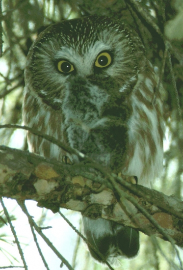 Years ago I came up with a theory based on personal experience. My friend, Jeff, and I had come upon a saw-whet owl while hiking in the Tetons. As we were checking out the little owl, a marten suddenly appeared to climb around the saw-whet before moving on. Flash forward a few years. I was following a fresh marten trail below the cabin when it led me into a thick patch of spruce. There I found white-wash and pellets from a saw-whet owl. Birds began harrassing something fifty yards away. I snowshoed over to check it out. I found the immature saw-whet owl that had been flushed off its perch by the marten I'd been following. Then it hit me. Many times I've found mice tucked away by saw-whets at their perches. Martens smell these out and steal their caches. Thus my theory: One can find owl perches by following marten tracks as they forage through the forest.