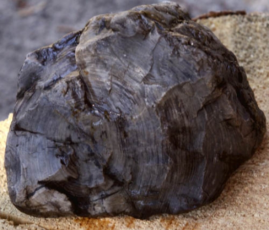 The other method of collecting will take you to the dry washes and cliff edges. Many huge log sections and stumps are imbedded in the ground. They are, of course, too large to collect, but very interesting to observe. The smaller pieces found in the hills are mostly rust colored but with a little luck a beautiful rare dark green stump or maybe a limb cast (entire unbroken section of limb) might be discovered. I've often found a layer of quartz connected to the better specimens. It's also a good idea to look in the exposed soil of uprooted trees.