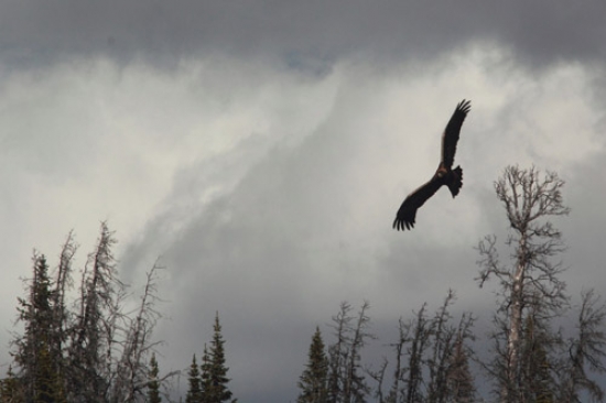 I was back to searching for goldens last week. Having a little luck in the Beartooths as raptors soar the highest ridges during their migration. Mostly I grabbed shots in distant mountain scenes, but once in a while photographing mountain goats, I scored nice photos of one as it soared by at almost eye level.Down by Little Bear Lake, I've been lucky at times with bald eagles. One afternoon I wa photographing an immature bald when a golden suddenly appeared out of nowhere and flew at the smaller eagle. Problem is, I saw it too late and missed the shot of the two eagles together. Darn!!