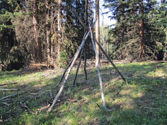 I heat with wood. But when I drop trees I take the whole thing. Even the limbs. This guy left a mess. One of the trees had fallen onto my tepee. I cleared away the branches. There were still a few poles left unbroken.