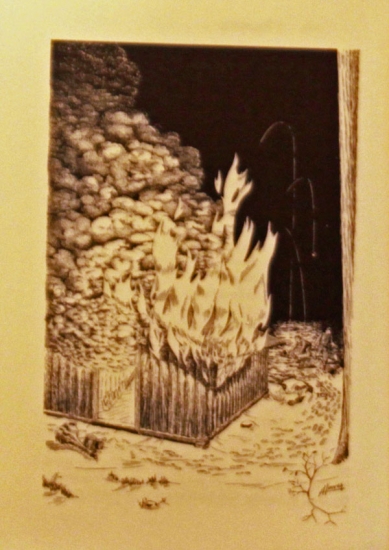 "The fire" is how "A Place in the Woods" ends. And here is is, unchanged. Les told me he wanted to repair the little building but Liz would not let him touch it.