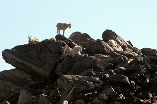 Cindy, Kelly and I along with pika researchers Katie and Kaitlyn watched the eclipse from Beartooth Pass yesterday. We wanted to see if pikas, goats, weasels or any other wildlife would be effected by a 95% eclipse.As we were setting up a herd of six mountin goats passed by, being lead by a seasoned old nanny. They climbed to a high mound of boulders and watched us curiously.