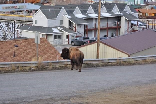 Notice my shot of our hotel with a buffalo (bison for you politically correct types) passing by. The town of Gardiner, Montana, is inundated with bison, elk, mule deer and pronghorns as they migrate out of the higher elevations of the park seeking warmer temperatures and food that isn’t covered by snow. The buffalo and elk carry a disease called brucellosis that can infect cattle and humans. https://www.aphis.usda.gov/animal_health/animal_dis_spec/cattle/downloads/cattle-bison.pdf