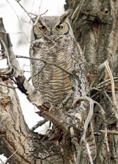 Checking a few more areas, we found two more great horned owl pairs. Those were nesting, but the nests were high in cottonwoods.