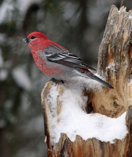 The winter has brought back friends we hadn't seen in a while. A flock of pine grosbeaks brighten the winter landscape. Hairy woodpeckers, red-breasted nuthatches, stellars jays, mountain chick-a-dees, clarks nutcrackers and our favorite gray jays visit us daily. We also see flying squirrels nightly.