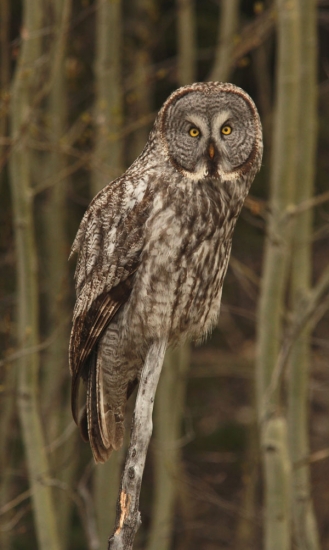 Then on the way home we came across a great gray owl perched above the highway. It was getting dark quickly, but we did watch it disappear into the forest upslope.