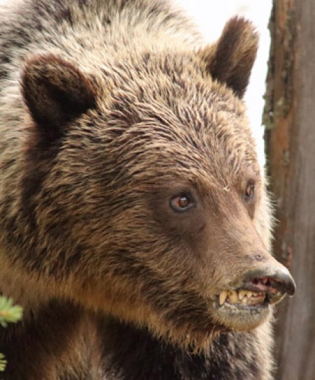 Well, last week I got a report a strange looking grizzly was seen 20 miles east of us. Three days ago Cindy and I came across the pair of grizzlies 8 miles to the east of the cabin. Two Face was busy digging up roots while Brother loped back into the forest.