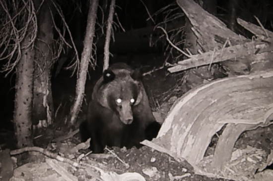 Earlier in the month, Bill Hamblin called and asked if we might go get the camera traps. Well, I had been on crutches for the last three weeks with a swollen knee and really had planned on waiting til I could walk. However, bad weather was on the way, and I've used crutches in the woods before, so I told Bill, let's give it a try. The next afternoon, Cindy and I, along with Bill, made our way down the mountain side to collect as many cameras as I could make it to. We eventually gathered up nine of the eleven I had out, with two just being too steep and far to reach. On one camera, I replaced the batteries and card then repositioned it. This I planned to leave all winter. To be honest, I was disappointed with the footage. It had been three weeks since we had last pulled the cards so I expected half the season on the cards. Apparently the peak was over early. The only bear footage was of the small grizzly and two cubs. I did find several shots showed her left front paw is missing three toes. It's an old injury, probably caused by a leg trap. The martens and weasels continued to hunt in the middens. Also more snowshoe hare footage and a shot of a porcupine. Two weeks later, when I could walk again, Cindy and I hiked down to get the trap I had planned to leave out all winter. Checking the footage, we found images of coyote and fox and also flying squirrel. We only captured one solo grizzly,but to be honest the best thing we got was a beautiful snowfall, burying the entire midden. To sum up. We captured 15 different mammal species and 10 different birds. Cementing the thought that for three weeks every year, the midden is the place to be! A list of species: Junco, robin, gray jay, grouse, flicker, stellars jay, clarks nutcracker, thrush, saw-whet owl, chickadee, squirrel, chipmunk, mice, voles, flying squirrel, weasel, pine marten, snowshoe hare, porcupine, grizzly, black bear, fox, coyote, elk and mule deer. (Gary, sorry about the Red Sox.)